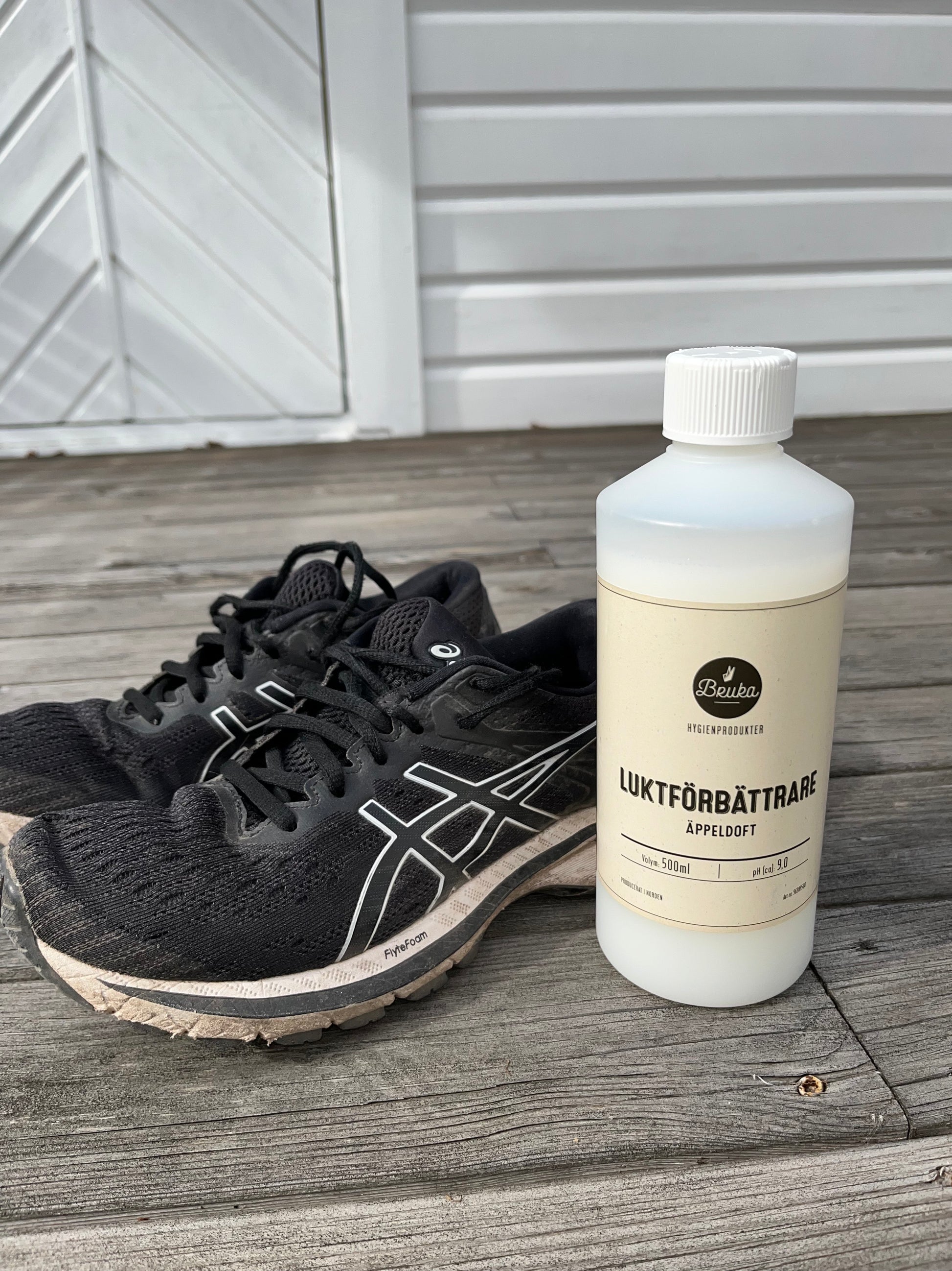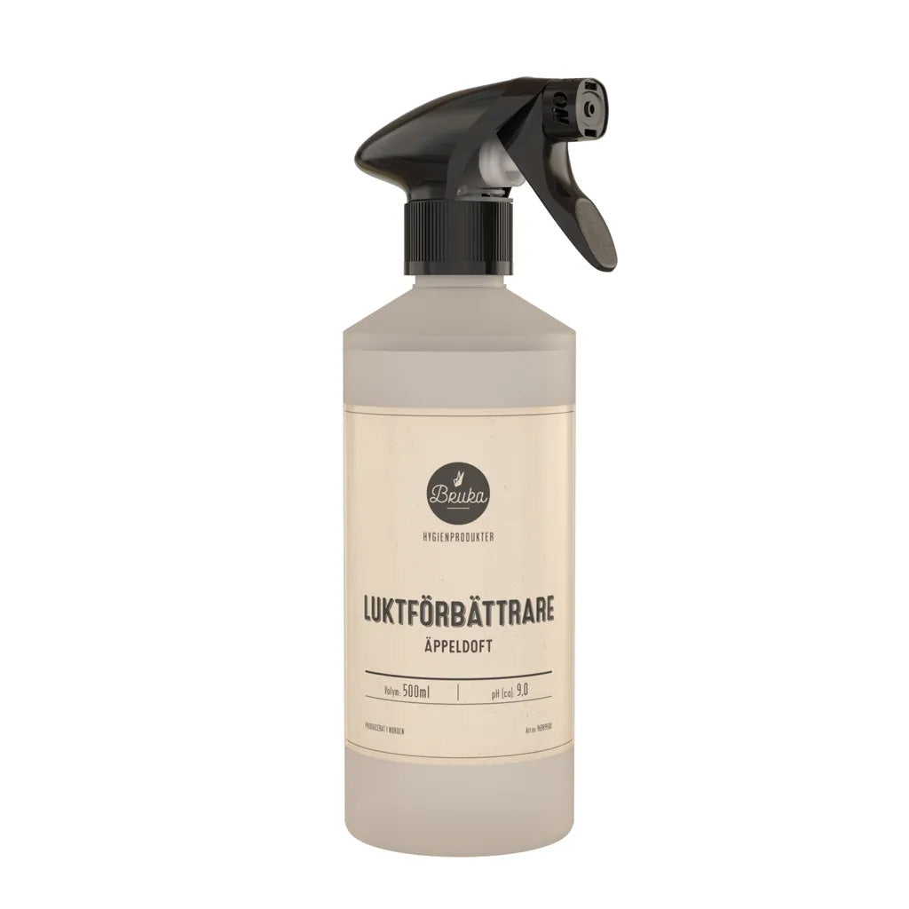 Luktförbättrare tar effektivt bort oönskad doft från exempelvis skor, träningsutrustning, soputrymmen och toaletter. Produkten har en uppfriskande doft av äpple.